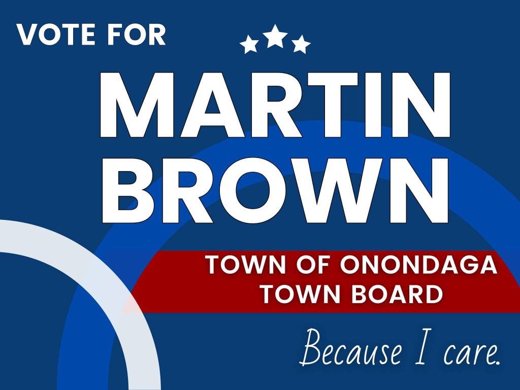 Martin grew up on Onondaga Hill and graduated from West Genesee Schools. Recently, he and his family moved back to Onondaga Hill from the Strathmore neighborhood in Syracuse to provide their children with a similar sense of community. Martin is married and has two children who attend Rockwell Elementary in the Onondaga Central School District. His family has been part of the Town of Onondaga since 1986.